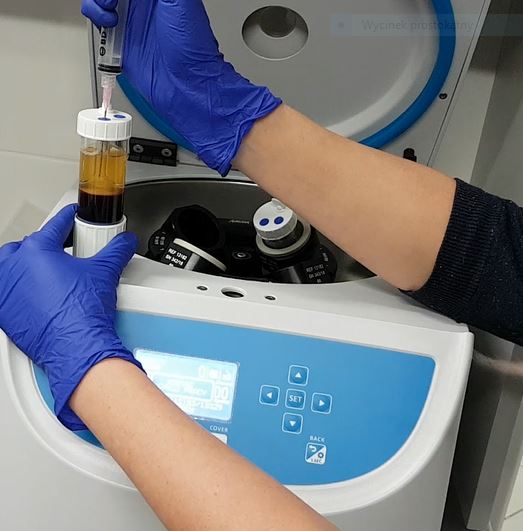 - pozyskanie i oddzielenie koncentratu bogatopłytkowego (3 do 32 ml),