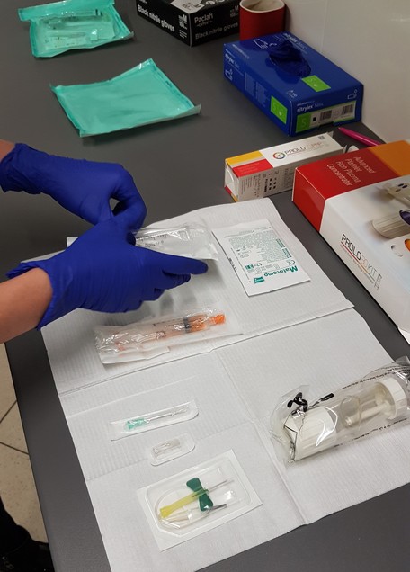 - pobranie krwi żylnej pacjenta (od 9 do 120 ml),